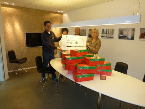 Sein Team sieht das ebenso, und als in einer Mitarbeiterbesprechung einer der Kollegen die Aktion „Weihnachten im Schuhkarton“ vorschlug, waren die 18 weihnachtlich bunt beklebten Schuhkartons schnell gepackt. Kuscheltiere, Spielzeug und Kleidung fanden ihren Weg ebenso in die Päckchen, wie Haarspangen, Hygieneartikel, Schulsachen und Süßigkeiten. Auch einen persönlichen Gruß wurde jedem Schuhkarton-Weihnachtspäckchen beigelegt und Ron Woydowski gab noch einen Spendenscheck in Höhe von 200 Euro dazu.